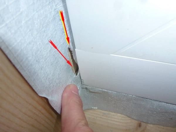 7.1. Kontrolle Fensterinnenabdichtung, Riss in der Abdichtungsfoie